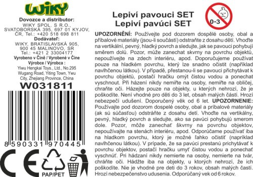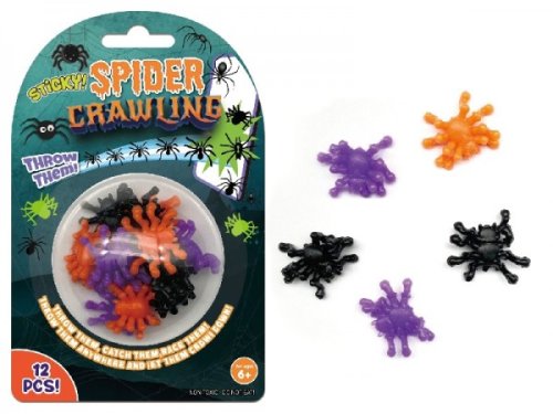 Zábava pre malých aj veľkých! Hoďte pavúky samostatne alebo po jednom kamkoľvek a sledujte, ako sa plazí po stenách, dverách, oknách alebo zrkadlách a nezanechávajú stopy! Pokiaľ pavúčik stratí svoju lepivosť, jednoducho opláchnite vodou a osušte papierovou utierkou. V balení je 12 kusov. Veľkosť pavúčka: 3 cm Vhodné pre deti od 3 rokov
