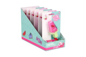 Lesk na pery Candy v tvare nanuka je zároveň prívesok. Dve rôzne farebné prevedenia – dve príchute.