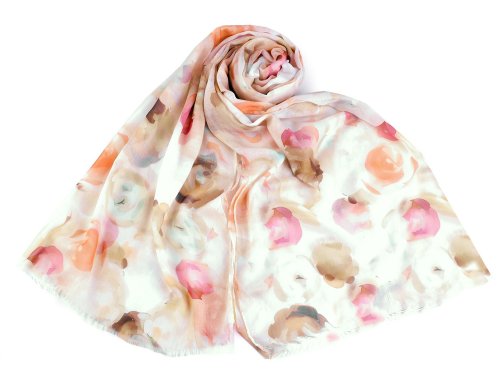 Šatka s farebným vzorom je ľahučká a vzdušná, veľmi príjemná na dotyk.
