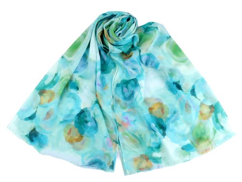 Šatka so vzorom farebných maľovaných kvetov je ľahučká a vzdušná, veľmi príjemná na dotyk. Je jemne priesvitný, na koncoch má jemné strapce. Doladí váš outfit, či už si vezmete sako, blúzku, svetrík alebo šaty. Šatky majú zlé štítky, skutočné zloženie je 100% polyester. Ospravedlňujeme sa za toto nedopatrenie a ďakujeme za pochopenie.