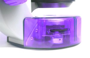 Ak sa chystáte pozorovať krídlo muchy alebo bunky cibule, treba na pracovný stolík položiť tenkú transparentnú vzorku. Praktické svorky ho bezpečne pridržia na mieste, takže ho pri náhodnom pohybe nestratíte zo zorného poľa. Svetlo vydávané LED diódami (umiestnenými pod stolíkom) prechádza preparátom a vytvára zväčšený obraz. Regulovateľný jas osvetlenia je veľmi praktická funkcia – môžete ho zosilniť pri preparátoch s väčšou hrúbkou, ktoré sú menej transparentné, a naopak zoslabiť pri pozorovaní veľmi tenkých a transparentných rezov.
