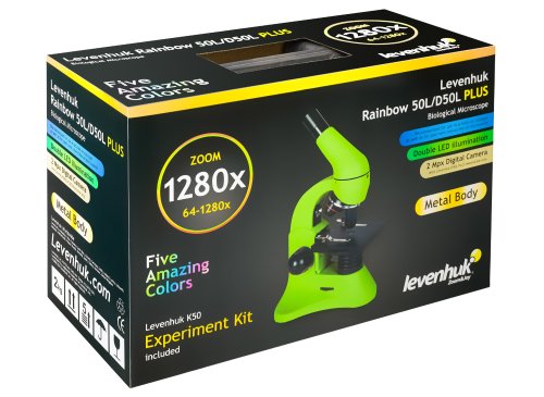 Bez ohľadu na to, či sa jedná o hodiny biológie alebo chémie v škole, laboratórny výskum na zdravotníckej inštitúcii alebo nezávislé amatérske bádanie vykonávané v pokoji domova - všetko bude ďaleko viac vzrušujúce s mikroskopom Levenhuk Rainbow 50L PLUS! Začiatočníkom sa bude určite páčiť naša pokusná sada, ktorá obsahuje množstvo zaujímavých preparátov pre mikroskopiu, zatiaľ čo skúsení užívatelia ocenia jeho skvelú optiku, ergonomickú konštrukciu a spoľahlivé telo. Farebný, originálny dizajn mikroskopu z neho robí skvelý darček pre každého, kto sa zaujíma o biológiu.