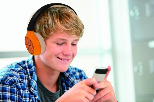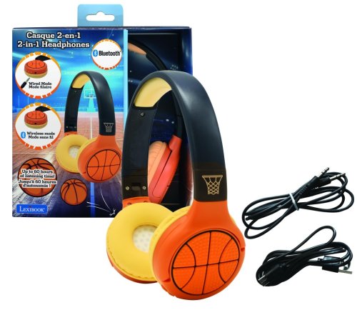 Slúchadlá Lexibook 2v1 Bluetooth skladacie Basketbal sú navrhnuté špeciálne pre deti a kombinujú zábavný športový dizajn s modernými technológiami. Ich výrazný vzhľad je inšpirovaný basketbalovou loptou, čo je podčiarknuté oranžovými slúchadlami s čiernymi linkami pripomínajúcimi textúru lopty a tmavomodrým náhlavným mostom s malým symbolom basketbalového koša. Polstrovanie mušlí je mäkké a žlté, čo zvyšuje komfort pri nosení. Vďaka skladacej konštrukcii sú slúchadlá ľahko prenosné a skladné.