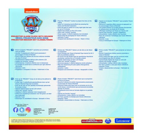 Celkovo je Lexibook 3D budík s motívom Tlapkovej patroly vhodným darčekom pre deti, ktoré majú radi túto sériu. Ponúka kombináciu praktickej funkcie budíka s hravým dizajnom a zaujímavými zvukovými efektmi. Projekcia času a nočné svetlo navyše zabezpečujú jednoduché používanie aj v noci, čo uľahčuje deťom orientáciu v čase a zaspávanie.