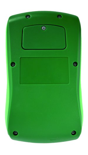 Telo kalkulačky je vyrobené z plastu, ktorý je pokrytý zeleným gumeným povrchom, ktorý poskytuje lepší úchop a zároveň zvyšuje odolnosť proti nárazom a skĺznutiu z ruky. Gumený povrch tiež prispieva k príjemnému pocitu pri držaní a používaní prístroja. Na zadnej strane sa nachádza kryt batérie, ktorý je pevne pripevnený skrutkou, čo zabraňuje nechcenému otvoreniu a ľahko umožňuje výmenu batérie typu LR54, ktorá je súčasťou balenia.