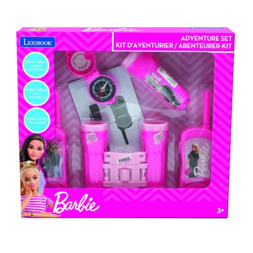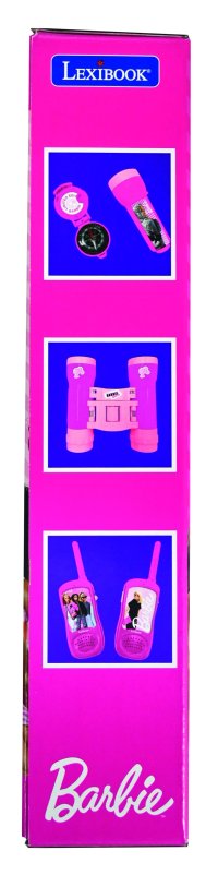 Vysielačky sú štýlovo zdobené obrázkami postáv Barbie a majú dosah až do 120 metrov, čím umožňujú bezpečnú a zábavnú komunikáciu medzi deťmi pri hrách vonku aj vnútri. Ďalekohľad je skladací a tiež zdobený logom Barbie Girl, jeho ružovo-fialová kombinácia farieb je typická pre túto značku a zároveň atraktívna pre malých používateľov. Baterka je vybavená obrázkom Barbie v sivej mikine a svieti jasným svetlom, čo uľahčuje orientáciu v tme alebo pri večerných hrách.