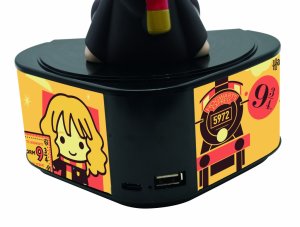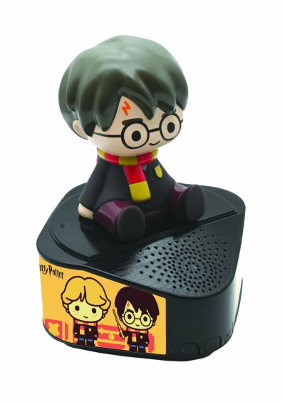 Dizajn reproduktora je unikátny, trojuholníkový tvar čiernej základne je ozdobený farebnými ilustráciami postáv z Harryho Pottera, vrátane Harryho samotného a jeho priateľov, ako je Hermiona. Figúrku Harryho charakterizujú ikonické prvky – okrúhle okuliare, jazva v tvare blesku na čele a červená šatka so žltými pruhmi, ktoré odkazujú na internát Chrabromil. Svetelný efekt figúrky vytvára príjemnú atmosféru, vhodnú napríklad do detskej izby.