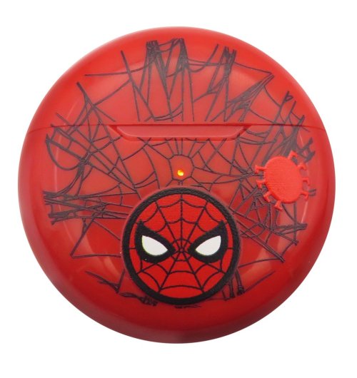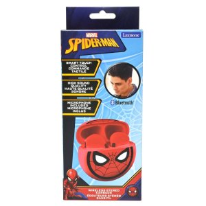 Bluetooth slúchadlá Lexibook do uší sú navrhnuté s motívom Spider-Mana, čo je zrejmé z výraznej červenej farby a charakteristických čiernych pavučín a ikonickej tváre Spidermana zdobených na puzdre aj samotných slúchadlách. Puzdro na slúchadlá má guľatý tvar a je opatrené malou červenou aplikáciou pripomínajúcou pavúka, ktorá je umiestnená vedľa ikonického loga. Slúchadlá sú ergonomicky tvarované pre pohodlné nosenie a na ich spodnej časti nájdeme drobné pavučinky, čo podčiarkuje celkový tematický dizajn.