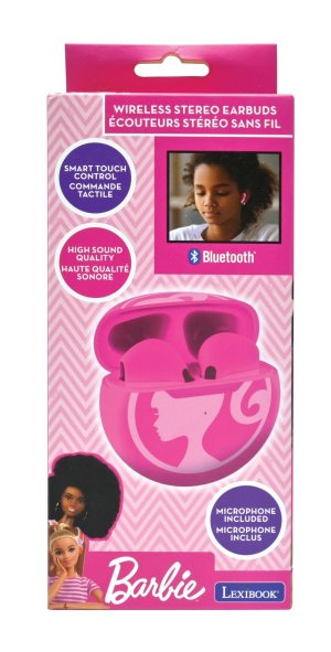 Bluetooth slúchadlá do uší Lexibook v spolupráci so značkou Barbie sú navrhnuté špeciálne pre deti, ktoré chcú kombinovať zábavu s modernou technológiou. Slúchadlá majú výraznú ružovú farbu, ktorá je typická pre značku Barbie, a dizajn je doplnený ikonickým logom Barbie – siluetou hlavy s vrkočom, ktorá je viditeľná ako na samotných slúchadlách, tak aj na ich praktickom nabíjacom puzdre. Vďaka svojej veľkosti a tvaru sú slúchadlá pohodlné na nosenie a dobre držia v ušiach mladých používateľov.