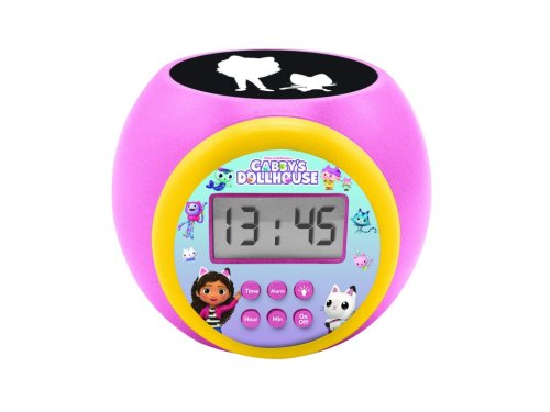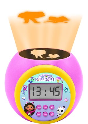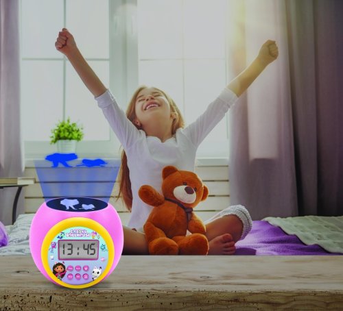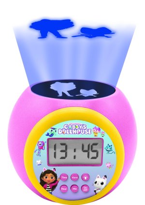 Jedným z hlavných a zaujímavých prvkov tohto budíka je integrovaný stropný projektor, ktorý premieta na strop alebo stenu siluety postavičiek z motívu „Gábinin kúzelný domček“. Projektor možno zapnúť v niekoľkých farebných variantoch osvetlenia, napríklad modrej, oranžovej alebo červenej, čo vytvára príjemnú a upokojujúcu atmosféru pred spaním. Tento efekt podporuje detský záujem a uľahčuje zaspávanie.