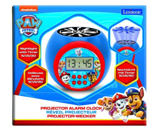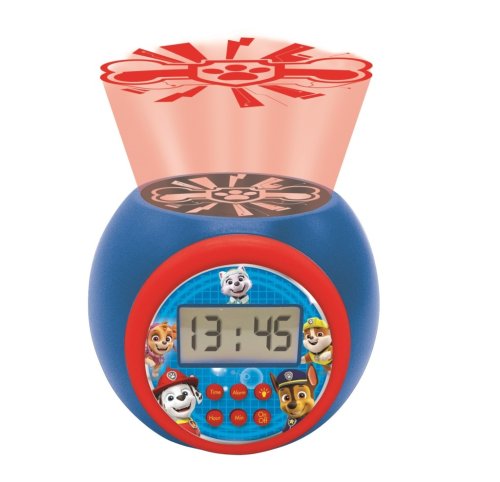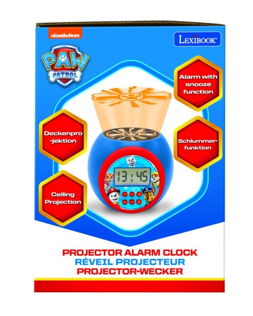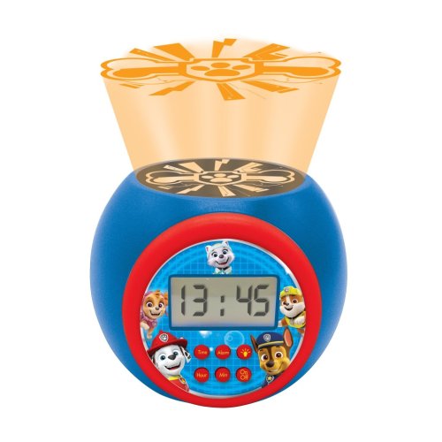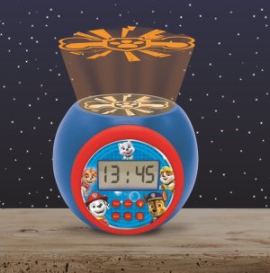 Výnimočnou funkciou tohto budíka je projektor umiestnený na hornej časti prístroja, ktorý premieta na strop ikonický symbol labky z Labkovej patroly. Projektor ponúka možnosť výberu z troch farebných režimov projekcie – modrá, červená a oranžová, čo umožňuje vytvoriť príjemnú atmosféru v detskej izbe. Navyše je možné nastaviť časovač automatického vypnutia projekcie na 5, 15 alebo 30 minút, čo je praktické pri zaspávaní.
