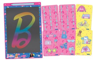 Lexibook kresliaci tablet Barbie s technológiou E-ink je elektronická hračka určená pre deti od 3 rokov, ktorá podporuje rozvoj fantázie a kreativity. Tablet má rozmery 28,5 x 19 cm a ponúka 28cm uhlopriečku kresliacej plochy, ktorá je obklopená farebným rámčekom s motívmi Barbie. Zadná strana tabletu je zdobená obrázkami postáv Barbie a nesie logo značky Lexibook. Súčasťou balenia je aj stylus v pastelovo modrej farbe, ktorý umožňuje presné kreslenie na displeji.