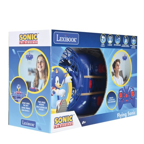 Lexibook létající UFO na dálkové ovládání Sonic je zábavná a interaktivní hračka určená dětem od 8 let, která kombinuje motiv populární postavičky Sonic ježek s moderní technologií dálkového ovládání. Tento modrý létající dron ve tvaru UFO je opatřen chráněnou konstrukcí, která zajišťuje bezpečný kontakt s okolím a zároveň chrání vrtule před poškozením. Na vrcholu dronu je umístěna figurka Sonica, která dodává hračce charakteristický vzhled a přitahuje pozornost fanoušků této slavné herní postavy.