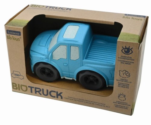 Hračka je balená v ekologickom kartónovom obale s výrezom, ktorý umožňuje vidieť produkt z rôznych uhlov. Obal zdôrazňuje ekologický aspekt hračky a jej bezpečnosť pre deti, pričom uvádza odporúčaný vek 18 mesiacov a viac. Pick-up je súčasťou radu Bio Toys od Lexibook, ktorá kombinuje zábavu s ohľadom na životné prostredie. Využitie bioplastu prispieva k udržateľnosti a zároveň ponúka odolnú a bezpečnú hračku pre predškolské deti.