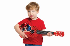 Lexibook moja prvá gitara Lienka je ideálna hudobná hračka pre deti od troch rokov, ktorá vďaka svojim rozmerom 53 cm (21 palcov) umožňuje ľahké držanie a hranie aj najmenším začiatočníkom. Gitara je navrhnutá v pestrom a atraktívnom dizajne inšpirovanom populárnou animovanou témou Miraculous, konkrétne postavou Lienky (Ladybug). Červené telo gitary zdobia čierne bodky a výrazný obrázok Lienky s jej malou spoločníčkou, čo z nej robí nielen hudobný nástroj, ale aj obľúbený doplnok pre malé fanúšičky tejto série.