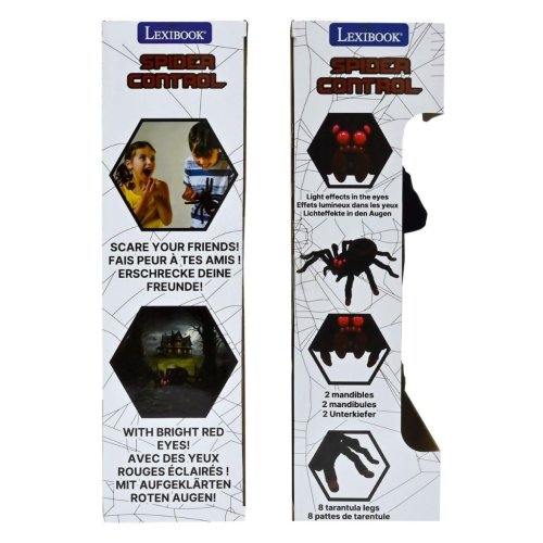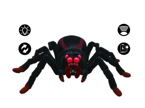 Lexibook pavouk na dálkové ovládání je realistické RC vozidlo, které věrně napodobuje pohyb skutečného pavouka. Jeho tělo je pokryto měkkým plyšovým materiálem, který zajišťuje nejen věrohodný vzhled, ale i příjemný dotek. Pavouk má osm samostatných nohou s hnědými konci a výrazné červené oči, které jsou osvětlené a dodávají mu strašidelný efekt. Dvě čelisti v přední části jsou rovněž výrazné a přispívají k celkové autenticitě hmyzího robota.