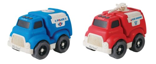 V súprave nájdeme dva rôzne modely: policajné auto a hasičské auto. Policajné vozidlo je modrej farby s typickými bielymi a čiernymi detailmi, ktoré napodobňujú reálne policajné vozidlá, vrátane emblému a svetiel na streche. Hasičské auto je červené so žltými a bielymi prvkami, ktoré zvýrazňujú jeho funkciu a dodávajú hračke autentický vzhľad. Obe autá majú robustný dizajn s výraznými kolesami, čo umožňuje ľahké a plynulé jazdenie po rôznych povrchoch.