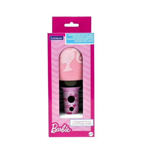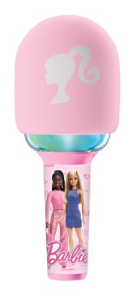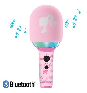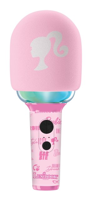 Lexibook svietiaci bezdrôtový karaoke mikrofón Barbie je špecializovaná elektronická hračka určená deťom, ktorá rozvíja ich kreativitu a fantáziu prostredníctvom spevu a zábavy. Mikrofón je navrhnutý v ružových odtieňoch, ktoré sú typické pre tému Barbie, a je zdobený ikonickým motívom siluety hlavy bábiky Barbie aj obrázkami samotných bábik na tele mikrofónu. Jeho povrchová úprava je príjemná na dotyk a horná časť mikrofónu je pokrytá mäkkým ružovým materiálom, ktorý chráni mikrofón a zároveň pôsobí vizuálne atraktívne.