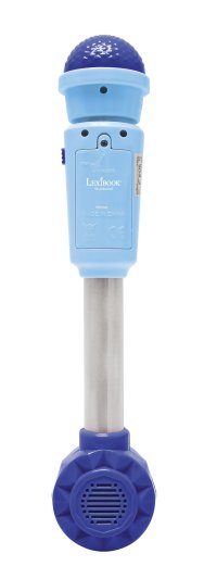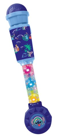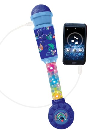 Lexibook svietiaci trendy mikrofón Stitch s melódiami je elektronická hračka určená pre deti od 4 rokov, ktorá rozvíja fantáziu a kreativitu prostredníctvom hudobnej zábavy. Tento mikrofón je inšpirovaný populárnou postavičkou Stitch z Disneyho, čo sa odráža v jeho farebnom dizajne s motívmi Stitch a tropických rastlín, ktoré sú vyhotovené v odtieňoch modrej a doplnené veselými ilustráciami. Mikrofón je dlhý približne 33 cm a jeho konštrukcia kombinuje pevný plast s priehľadnou časťou, ktorá vďaka vstavanému osvetleniu vytvára efektné farebné svetelné vzory. Vďaka tejto funkcii hračka upúta pozornosť a podporí detskú predstavivosť pri spievaní alebo hraní rolí.