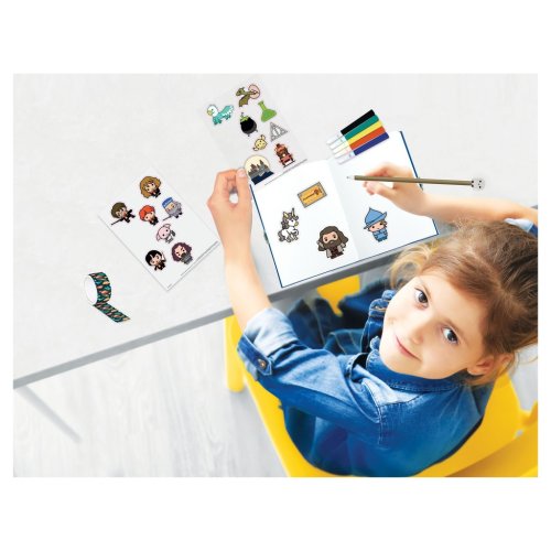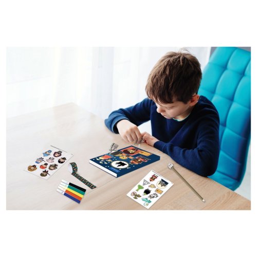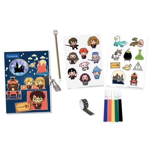 Dokonalý 100-stranový denník na zápisky a myšlienky vášho dieťaťa, doplnený svetlom a visiaca zámkom. Pero Hedvika, farebné fixky a tematické nálepky z neho robia skvelú pomôcku na písanie a výtvarné tvorenie. Nechajte svoje najmenšie bez obáv zveriť svoje tajomstvá Harrymu Potterovi, Hermione a Ronovi!