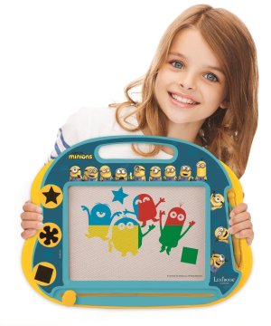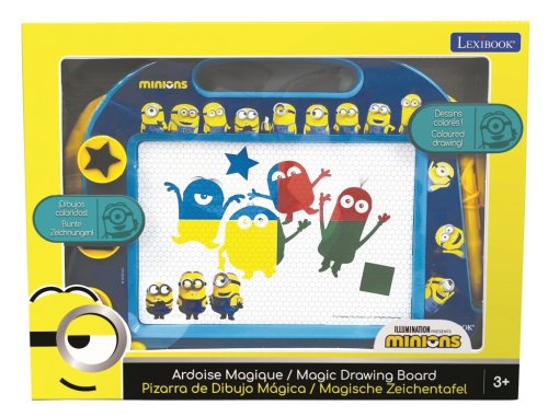 Kresliaca tabuľa Lexibook s motívom Mimoňov je kreatívna hračka navrhnutá pre deti od 3 rokov, ktorá podporuje rozvoj fantázie a jemnej motoriky. Tabuľa je farebná, prevažne v modro-žltej kombinácii, čo je priamo inšpirované populárnymi postavičkami z filmovej série Mimoňovia. Celý rám tabule je zdobený figúrkami a motívmi Mimoňov, ktoré deťom pomáhajú lepšie sa s produktom stotožniť a podporujú ich záujem o kreslenie. Súčasťou je praktická rukoväť na jednoduché prenášanie.