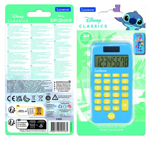 Lexibook vrecková kalkulačka Stitch je elektronické zariadenie určené predovšetkým deťom a žiakom, ktoré kombinuje praktickú funkciu kalkulačky s obľúbeným motívom z animovaného filmu Stitch. Tento produkt spadá do kategórie elektroniky pre deti a predstavuje jednoduchý spôsob, ako uľahčiť základné matematické výpočty v školskom prostredí. Kalkulačka je navrhnutá tak, aby bola ľahko prenosná a pohodlná na použitie kedykoľvek a kdekoľvek.
