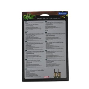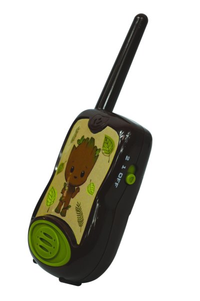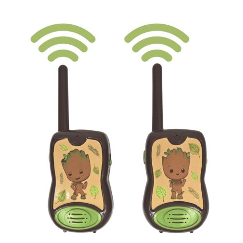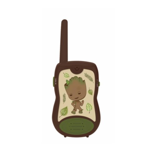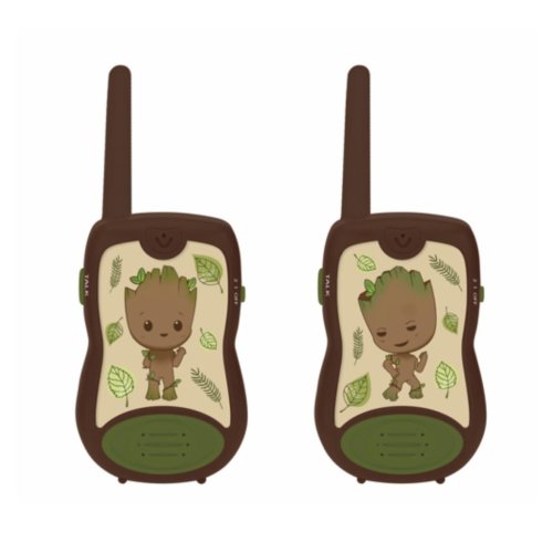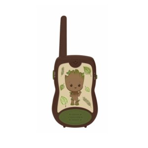 Vysielačky Lexibook Groot predstavujú dvojicu detských komunikačných zariadení navrhnutých s motívom obľúbenej postavičky Groota z Marvel univerza. Vysielačky sú určené deťom od 3 rokov a ponúkajú dosah až 200 metrov, čo umožňuje bezpečnú a zábavnú komunikáciu na dlhšiu vzdialenosť. Každá vysielačka má ergonomický tvar vhodný pre detské ruky a je vyrobená z odolného plastu v prírodných farbách hnedej a zelenej, ktoré odkazujú na charakter Groota. Na prednej strane sú ozdobené roztomilými ilustráciami Groota s motívmi listov, čo zvyšuje atraktivitu pre malých fanúšikov.