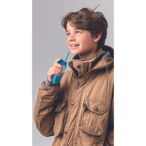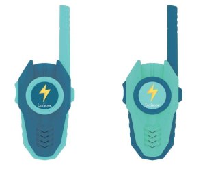 Vysielačky Lexibook predstavujú praktickú a zábavnú elektronickú hračku určenú pre deti od 3 rokov, ktorá podporuje rozvoj fantázie a kreatívneho myslenia. Tento set obsahuje dvojicu vysielačiek v modernom dizajne kombinujúcom odtiene modrej a tyrkysovej farby. Každá vysielačka je vybavená dlhou anténou a ergonomickým tvarom, ktorý sa pohodlne drží v detskej ruke. Na prednej strane je výrazné koliesko s logom Lexibook a symbolom blesku, čo dodáva prístrojom štýlový vzhľad a zároveň slúži na ovládanie funkcií.