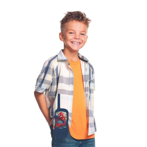 Vysielačky sú ľahké a ergonomicky tvarované tak, aby ich deti ľahko držali v ruke alebo ich mohli pripnúť za opasok vďaka praktickému klipu na zadnej strane. Produkt je súčasťou kategórie elektroniky pre deti a je vhodný na spoločné hry, ktoré podporujú komunikáciu a interaktivitu. Balenie je farebné a prehľadné, s výrazným logom Marvel Spider-Man a informáciami o dosahu, čo uľahčuje orientáciu pri výbere.