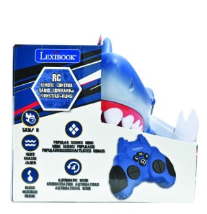 Lexibook žralok na dálkové ovládání je zábavná a dynamická hračka, která nabízí realistický zážitek z ovládání vodního žraloka. Tento RC model je vyrobený z odolného plastu v modré barvě a má detailně propracovaný design, který věrně napodobuje žraloka s výraznýma očima, ostrými bílými zuby a pohyblivým ocasem. Jeho robustní konstrukce mu umožňuje plynulý pohyb po podlaze i venkovních površích, což dokládají fotografie s dětmi hrajícími si s žralokem v interiéru i na venkovním chodníku.