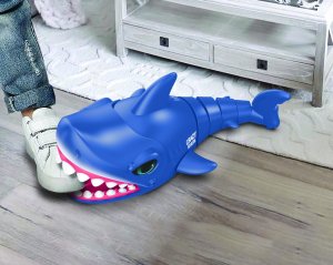 Žralok je ovládán ergonomickým dálkovým ovladačem, který je také modrý s černými úchopy pro lepší držení a tlačítky usnadňujícími ovládání. Díky dálkovému ovládání lze žraloka snadno navigovat v různých směrech, přičemž dosahuje rychlosti až 5 km/h. Hračka nabízí také několik zajímavých funkcí, například hudební režim, režim lovu a automatickou ukázku, které přispívají k atraktivitě hry. Zvukové efekty a pohyby žraloka vytvářejí živý a zábavný zážitek.