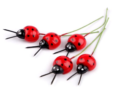 Dekoračné lienky sú pripevnené k ohybnému floristickému drôtiku. Vyniknú zakomponované v kvetinových väzbách, aranžmánoch, vencoch, kvetináčoch a pod.