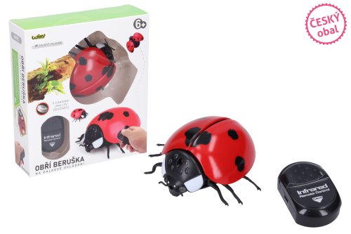 Obria lienka na diaľkové ovládanie. Veľkosť 9 x 9 cm. IR ovládač, dopredu, cúvanie doprava, demo. Výdrž až 20 min, dosah 10 m. Lienka 3 x LR44 súčasťou, ovládač - 3xLR44, súčasťou. Vek: 6+