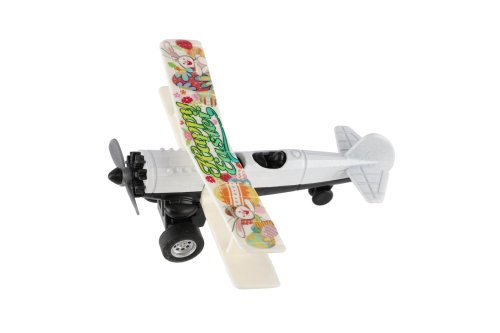 Každý malý pilot uvíta toto nádherne farebné lietadlo do svojej zbierky. Lietadlo je na spätné natiahnutie a pri pohybe sa točí vrtuľa umiestnená na prednej časti. Rozmer lietadla: 10 x 11 cm. Vhodné pre deti od 3 rokov.