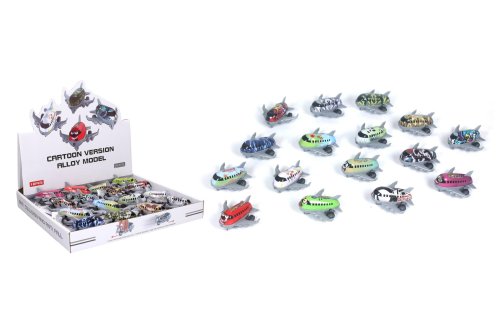 Lietadlo kov/plast. Veľkosť 7,5 cm. Na spätné natiahnutie. 16 ks display box. 16 farebných variantov.