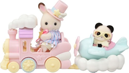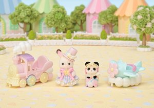 Lietadlo, vláčik a baby figúrky v zábavnom parku to všetko je súčasťou tejto úžasnej sady Sylvanian Families. Baby čokoládový zajačik Clem a baby panda Erin majú na sebe roztomilé oblečky a doplnky, ktoré sa hodia k príslušným vozidlám. Počas jazdy sa dym vláčika pohybuje hore a dole a lietadlo sa kýve zo strany na stranu. Vláčik a lietadlo je možné navyše spojiť dohromady. Celá sada je v jemných pastelových farbách. Hračky Sylvanian Families rozvíjajú predstavivosť a povzbudzujú deti k hraniu rolí. Hra s figúrkami rozvíja kreativitu a učí emóciám vytváraním a rozprávaním príbehov založených na každodenných zážitkoch a pozorovaní sveta. Vyznačujú sa najvyššou kvalitou a výnimočným dôrazom na detaily. Figúrky Sylvanian Families sú pokryté mäkkým semišom, majú pohyblivé končatiny a hlavu. Oblečenie je možné z figúrok zložiť a vymeniť za iný outfit. Balené v krabičke. Rozmery balenia: 13 x 14,6 x 5,5 cm. Vek: 3+