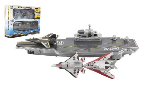 Lietadlová loď pre milovníkov hračiek, najmä lodí. Doplň aj tie svoju zbierku hračiek krásnym modelom lode, z ktorej je možné ručne katapultovať stíhačky do vzduchu. Súprava obsahuje tiež 3 ks lietadiel. Rozmery balenia 29 x 22 x 7 cm. Vhodné pre deti od 3 rokov.