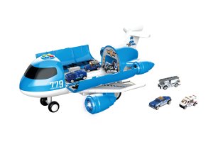 Lietadlová stanica s efektmi 6 áut. Lietadlo 40 cm na zotrvačník, autá 7 cm majú voľné kolesá. Lietadlo je otvárateľné, v chvoste sa nachádza rampa. Svetelné a zvukové efekty, aktivujú sa 4 tlačidlami v prednej časti lietadla. 3xAA batérie nie sú súčasťou.