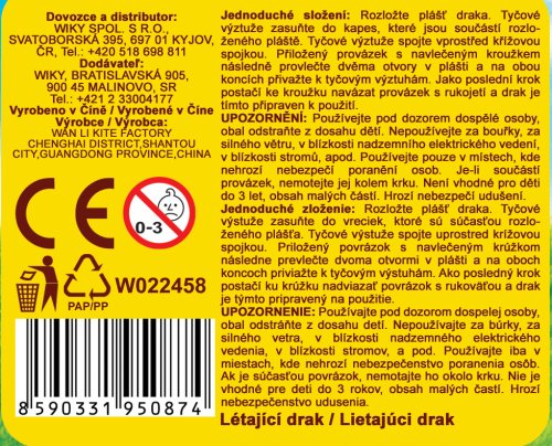 Seznam varování týkajících se bezpečnosti draků vychází z požadavků nařízení (EU) 2023/988 o obecné bezpečnosti výrobků (GPSR):
