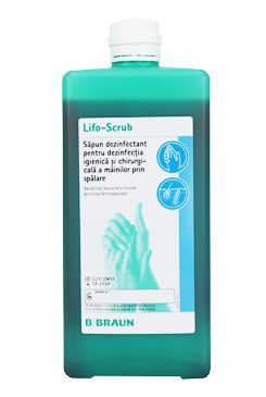 Ruky smočiť vodou a umývať s cca 5 ml Lifo-Scrubu po 1 minútu.