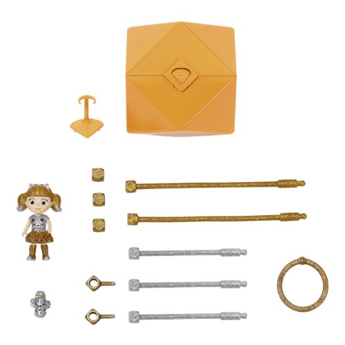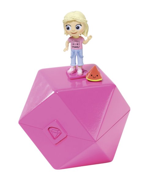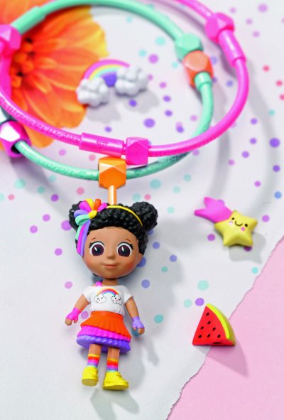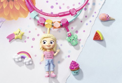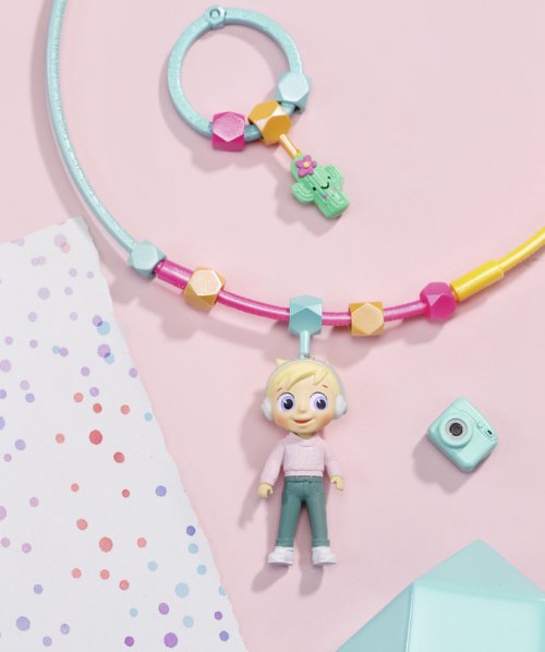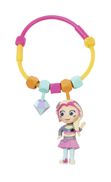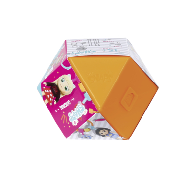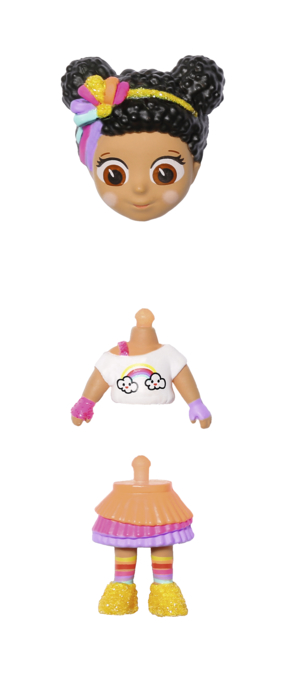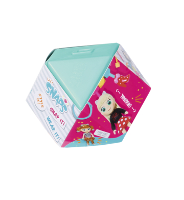 "Vymieňu bábikám hlavu, telo a nohy a vytvor tak úplne novú postavičku. Modré kučeravé vlasy, telo s dúhovým tričkom a super rockerské nohy. Alebo! Krátke vlasy, žlté tričko, červeno a bielo bodkovaná sukňa s ružovým tričkom. Zacvakni jednotlivé časti bábiky! viac ako 100.000 rôznych kombinácií Niekde je schovaná i vzácna trblietavá bábika! propriety, ako napríklad batoh, ceruzku alebo džínsovú bundu. • LIL' SNAPS. • Na hranie, zbieranie a vymieňanie. šnúrok, 1 stojan na bábiku. "