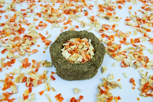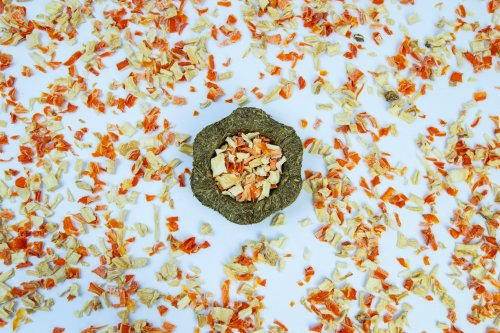 Voňavá, prírodná maškrtná miska pre králiky a hlodavce obohatená o mrkvu a paštrnák. Bezobilná receptúra podporuje zdravé trávenie a prirodzené okusovanie. Skvelá ako spestrenie jedálnička a na zahnanie nudy.