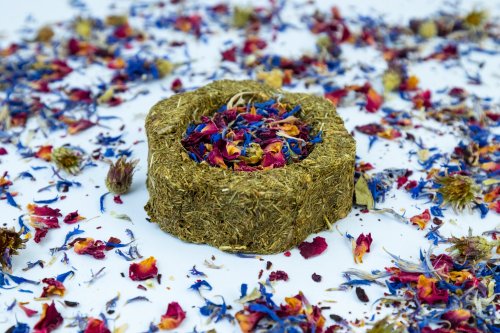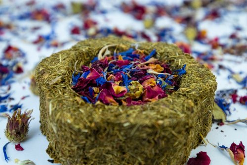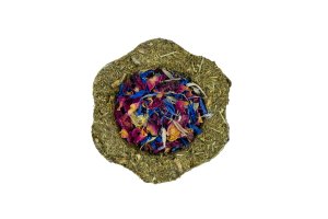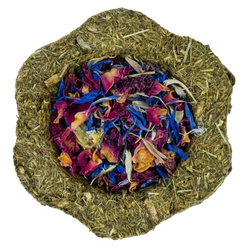 Voňavá, prírodná maškrtová miska pre králiky a hlodavce obohatená o ružu a nevädzu. Bezobilná receptúra podporuje zdravé trávenie a prirodzené okusovanie. Skvelá ako spestrenie jedálnička a na zahnanie nudy.