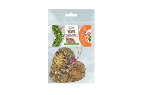 Doprajte svojmu hlodavcovi voňavú a zdravú pochúťku! Toto ručne lisované bylinkové srdce je plné sušených lúčnych tráv, kvetov nechtíka, nevädze a ruže, ktoré nielen krásne vonia, ale tiež podporujú prirodzené okusovanie a trávenie. Skvelá odmena aj spestrenie každodenného jedálnička.