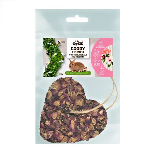 Doprajte svojmu hlodavcovi voňavú a zdravú pochúťku! Toto ručne lisované bylinkové srdce je plné sušených lúčnych tráv, šípkou, ružou a ibištekom, ktoré nielen krásne vonia, ale tiež podporujú prirodzené okusovanie a trávenie. Skvelá odmena aj spestrenie každodenného jedálnička.