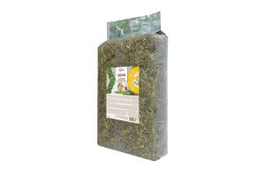 Zloženie : Seno z lúk 98% (môže obsahovať bojínok lúčny, ovsík vyvýšený, medyněk vlnatý, kostravu červenú, lipnicu obyčajnú, kostravu lúčnu, srhu ríznačku, psárku obyčajnú, ďatelina plazivá, ďatelina lúčna, krvav, zvončekov a ďalšie lúčne byliny), harmanček 1%, púpava 1%.
