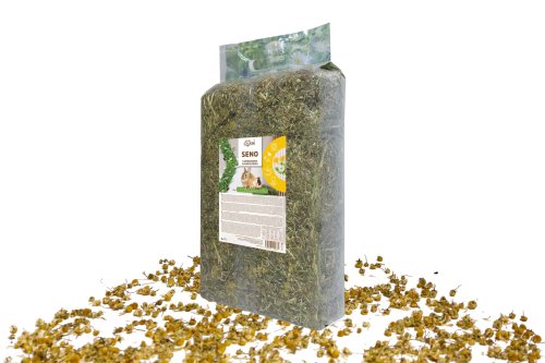 Vysoko kvalitné seno z českých lúk určené na kŕmne účely, obohatené o harmanček a púpavu, ktoré dodávajú senu prirodzenú arómu a prispievajú k spestreniu kŕmnej dávky.
