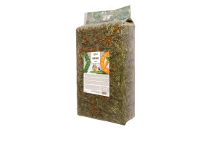 Zloženie : Seno z lúk 98% (môže obsahovať bojínok lúčny, ovsík vyvýšený, medyněk vlnatý, kostravu červenú, lipnicu obyčajnú, kostravu lúčnu, srhu ríznačku, psárku obyčajnú, ďatelina plazivá, ďatelina lúčna, krvav, zvončekov a ďalšie lúčne byliny), sušená mrkva 2%.