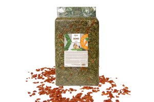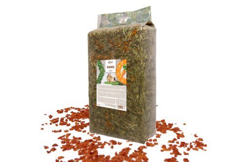 Vysoko kvalitné seno z českých lúk určené na kŕmne účely, obohatené o mrkvu, ktorá dodáva senu prirodzenú sladkosť, príjemnú vôňu a zvyšuje jeho atraktivitu.