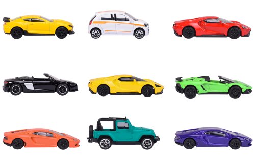 Darčeková sada 13 ks kovových autíčok, 9 bežných autíčok a 4 autíčka z limitovanej edície 9. Dĺžka auta 7,5 cm.